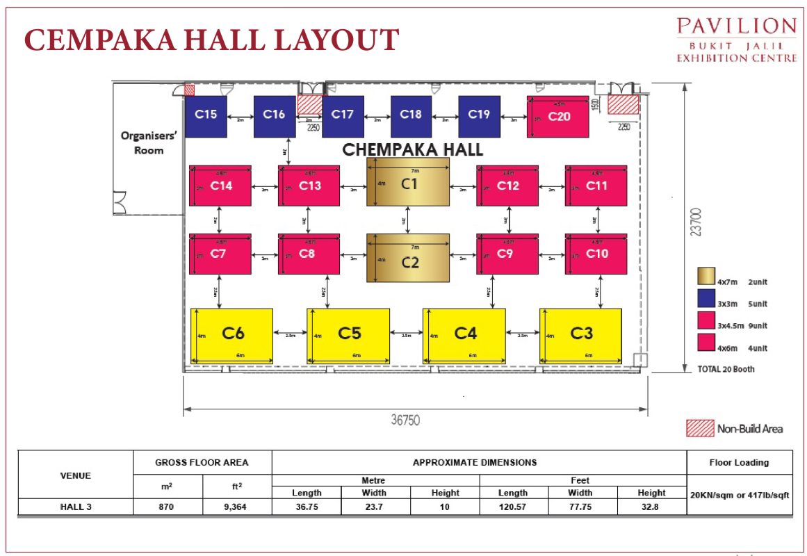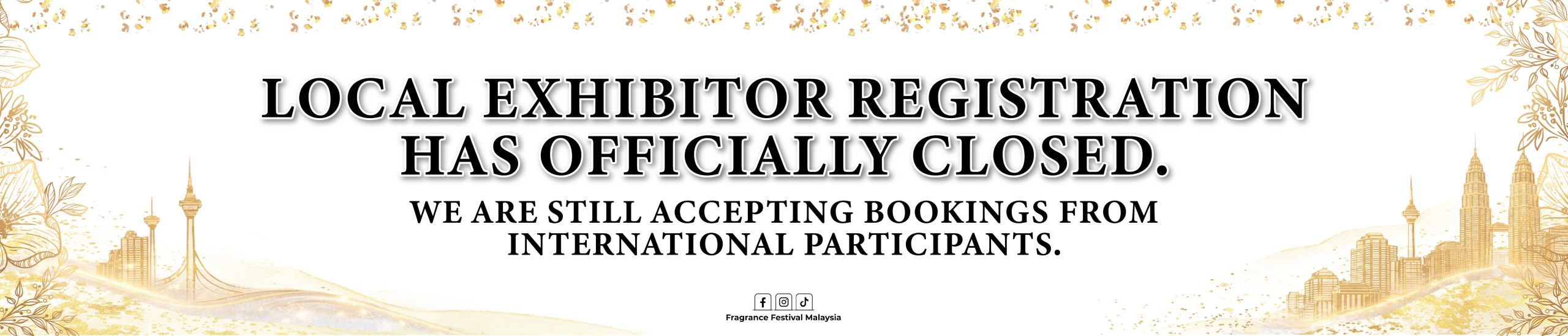FRAGRANCE FESTIVAL MALAYSIA 3.0 Date : 2 - 4 October, 2026 Venue : Pavilion Exhibition CentreBukit Jalil, Kuala Lumpur Bigger place for bigger crowd.Secure your place now!!! Interested to join us as an Exhibitor? Space booking is open!!! Book a Space ANGGERIK HALL Different booth. Booth price differs based on the size, location with main stage and main entrance. A11, A12, A13, A14, A15, A16 booth size is 6 meter x 3 meter. This hall is reserved for Domestic Exhibitor only. MELATI HALL All booth size is 3 meter x 3 meter. Booth price differs based on the location with main stage and main entrance. This hall is reserved for Domestic Exhibitor only. CHEMPAKA HALL Different booth size. Booth price differs based on the size, location with main stage and main entrance. This hall is reserved for International Exhibitor. DAHLIA HALL Single booth size (D1, D2, D4, D5) is 3 meter x 4 meter. Combine booth size (D3, D6, D7) is 3 meter x 8 meter. This hall is reserved for Domestic Exhibitor only.